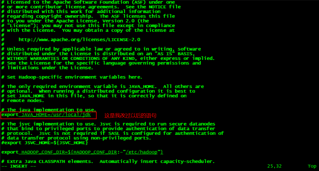 # vim hadoop-env.sh //用vim编辑器打开jdk配置文