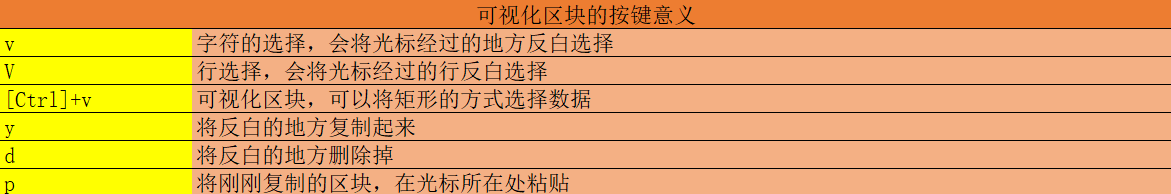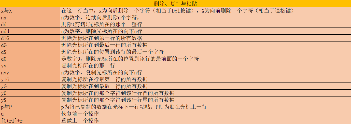 6、一般命令模式可用的功能按键说明、光标移动、复制粘贴、查找替换等(我以图片的形式给你们呈现,只是几个常用的)