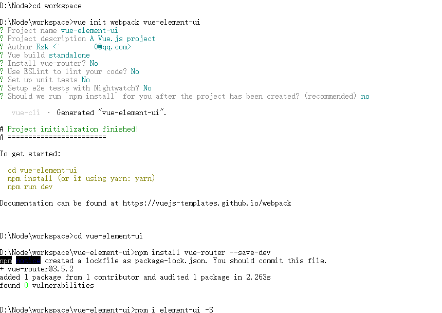 # 使用webpack打包工具初始化一个名为 vue-element-ui的工程