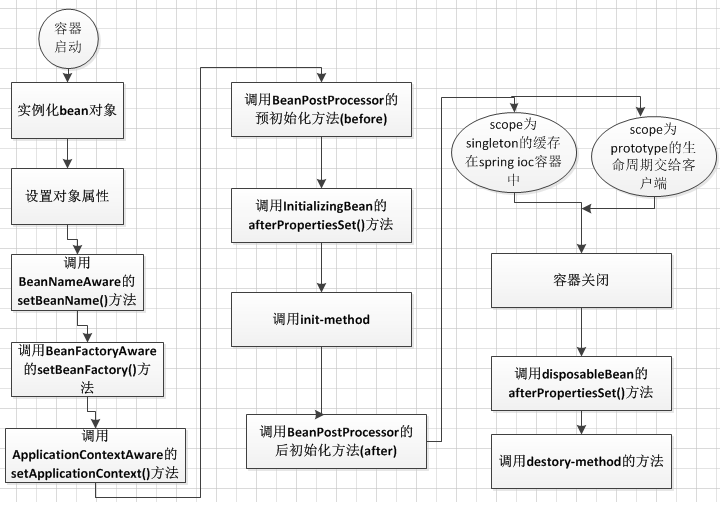 j. 如果在 中指定了该 Bean 的作用域为 singleton,则将该 Bean 放入 Spring IoC 的缓存池中,触发 Spring 对该 Bean 的生命周期管理;如果在 中指定了该 Bean 的作用域为 prototype,则将该 Bean 交给调用者,调用者管理该 Bean 的生命周期,Spring 不再管理该 Bean。