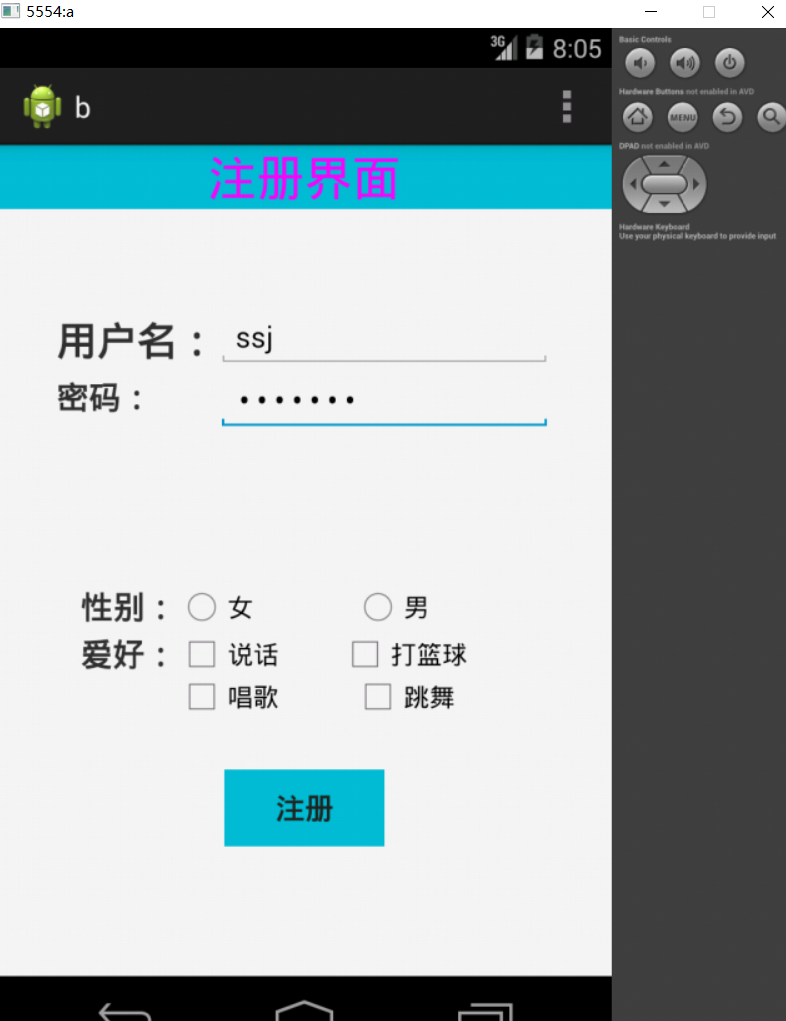 android:text="性别:"
