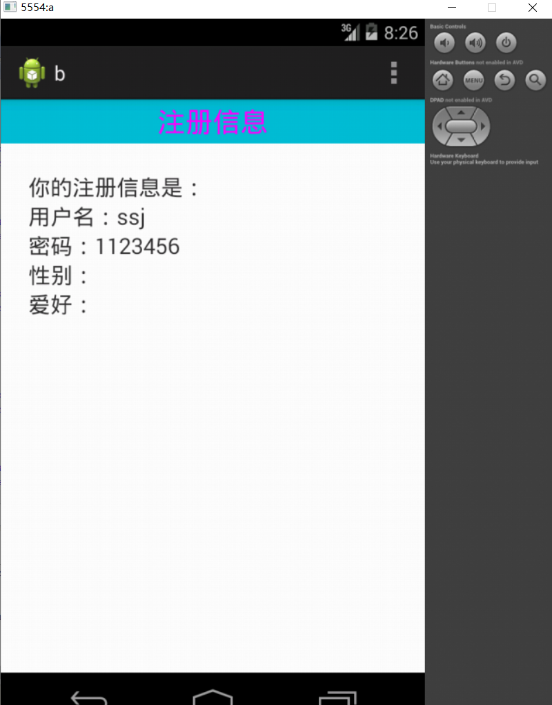 android:text="你的注册信息是:"