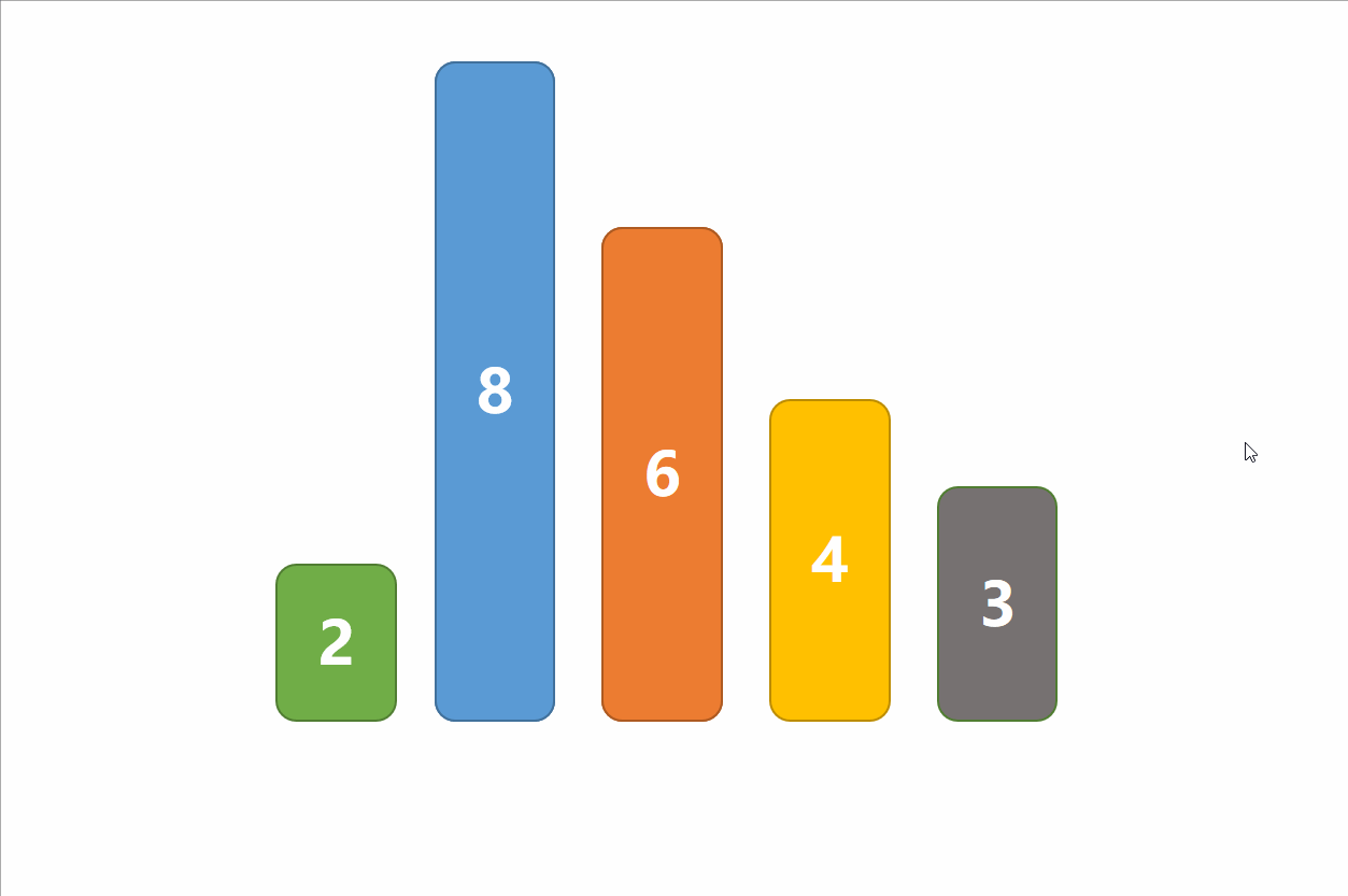 算法会从头开始进行两两相邻元素比较,保证大的在后面,小的在前面,如果顺序不对,则交换。这样比较一轮之后,所有元素中最大的会被交换到最后面。然后继续从头开始比较,第二大的元素被浮动到后面,不断重复这个过程,直到元素有序。