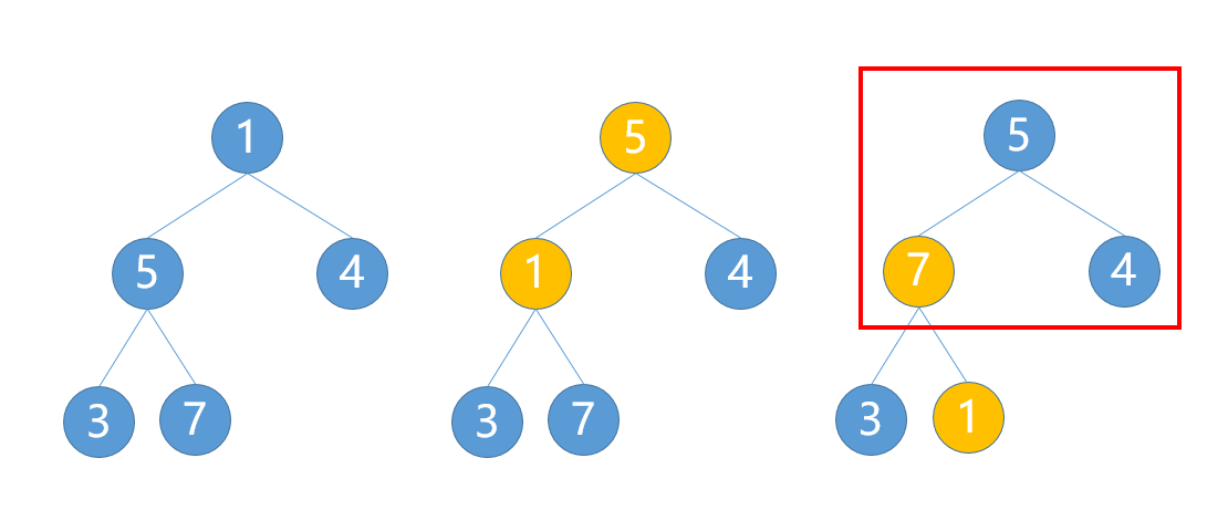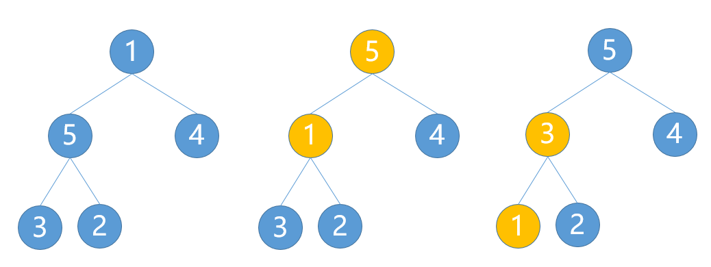 在整个序列中,保证所有的两两相邻元素比较,顺序不对则交换,这样最大的元素一定能沉到最后。