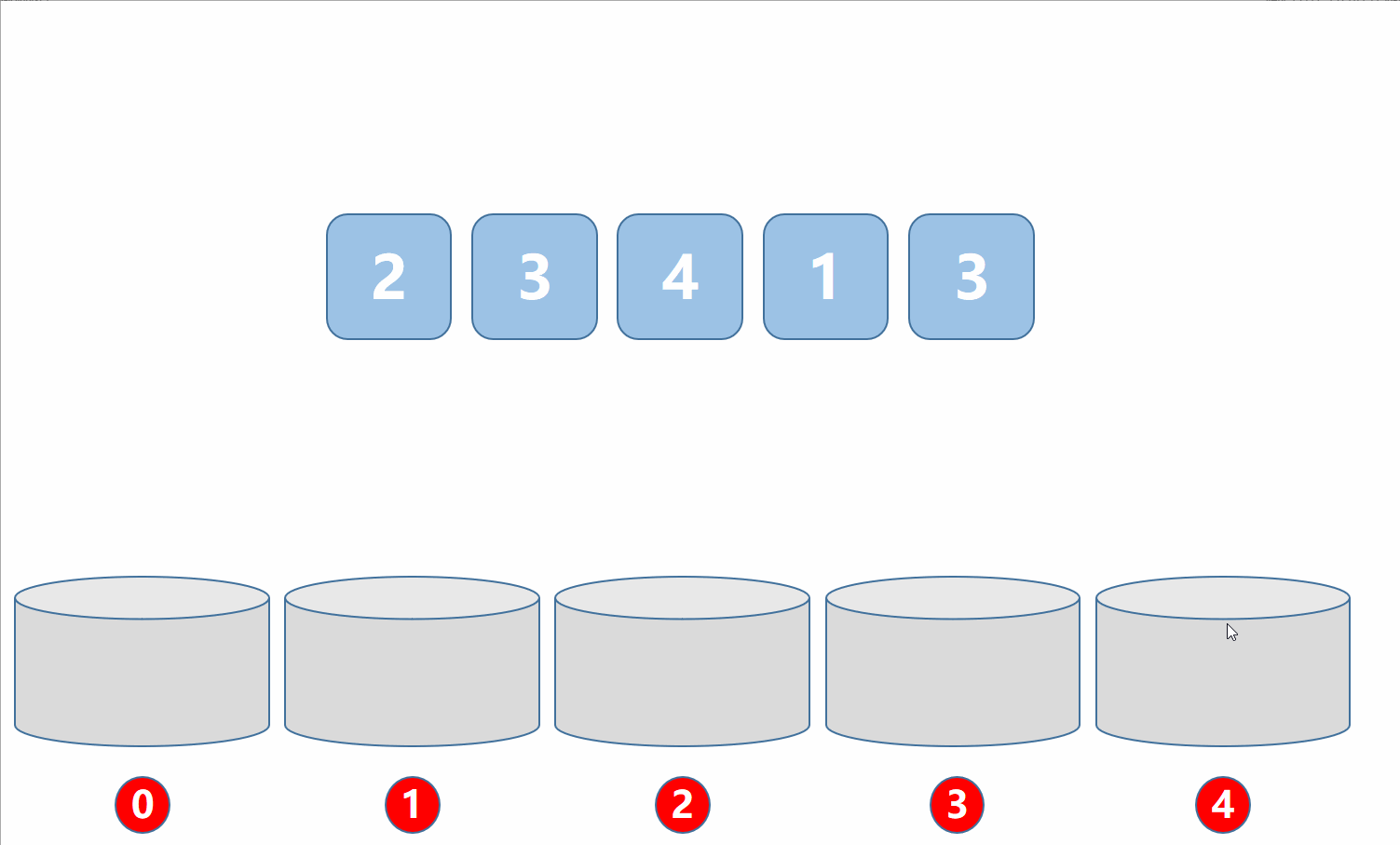基数排序是按照,数的位数来进行的,从低位到高位,每次排位数的时候,都可以使用计数排序,因为\(10\)进制的数,最大为\(9\)。换句话说,就是先按个位数大小排序,然后是十位、百位,依次类推。每一次当前位数排序完后,都需要按照这个顺序重组数组,直到最大的一个数的所有位数排序。