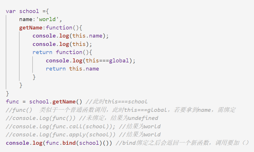 观察函数调用的时候是否是普通函数的调用,若为普通函数的调用,此时的this是global,若没有绑定,得不到想要的结果,因此需要绑定。