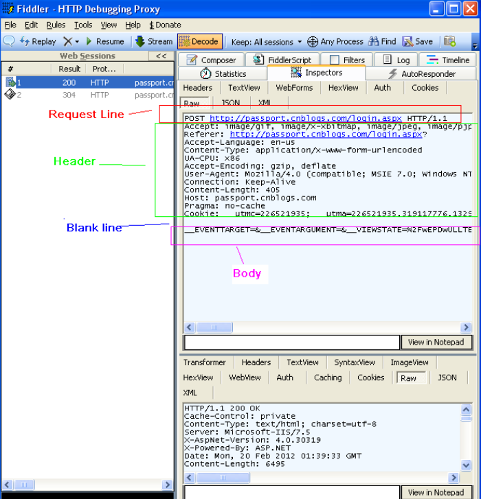先看Request消息的结构,Request消息分为3部分:Request line,Request header,Request body,在header和body之间有一个空行