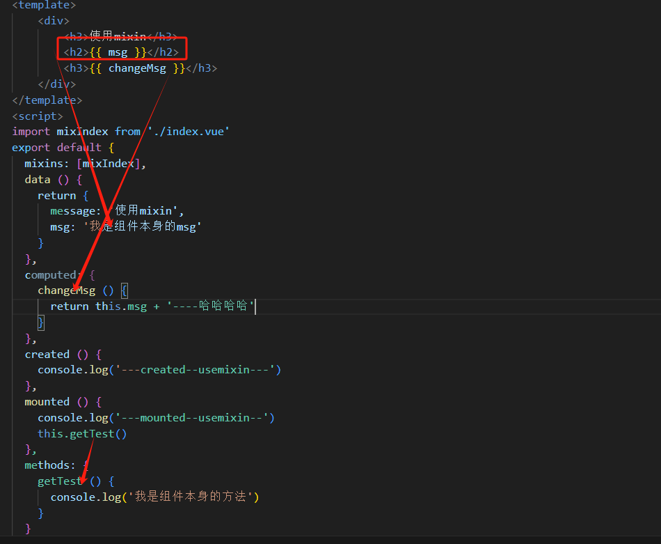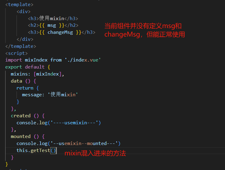 当组件使用混入对象时,所有混入对象的选项将被“混合”进入该组件本身的选项,因此要了解“混合规则”