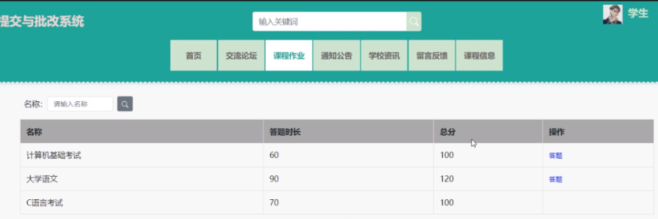 课程作业界面