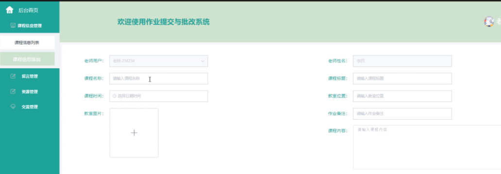 老师用户功能模块课程信息管理界面