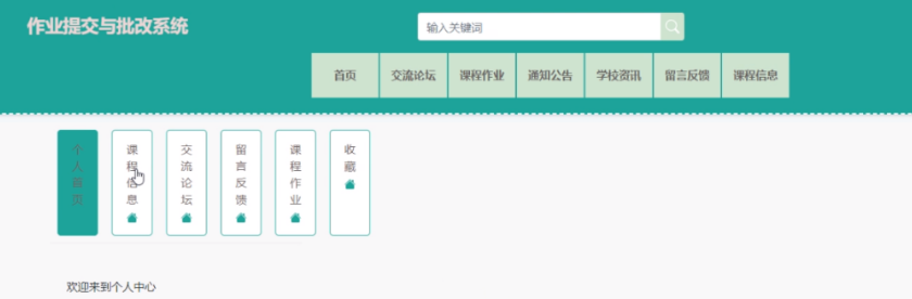 用户在“我的”下拉“个人中心”菜单栏中可以查看“个人首页、交流论坛、留言反馈、课程作业、收藏”信息