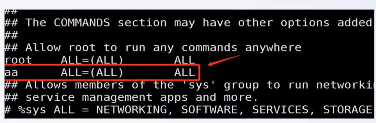 sudo命令的工作原理是:当用户执行sudo命令时,系统会主动寻找/etc/sudoers文件,判断该用户是否具有执行sudo的权限,若确认用户具有权限后,让用户输入密码进行确认,但root用户在执行sudo时不需要输入密码,可以利用此文件配置如下内容让用户在不输入root用户密码的情况下使用sudo命令