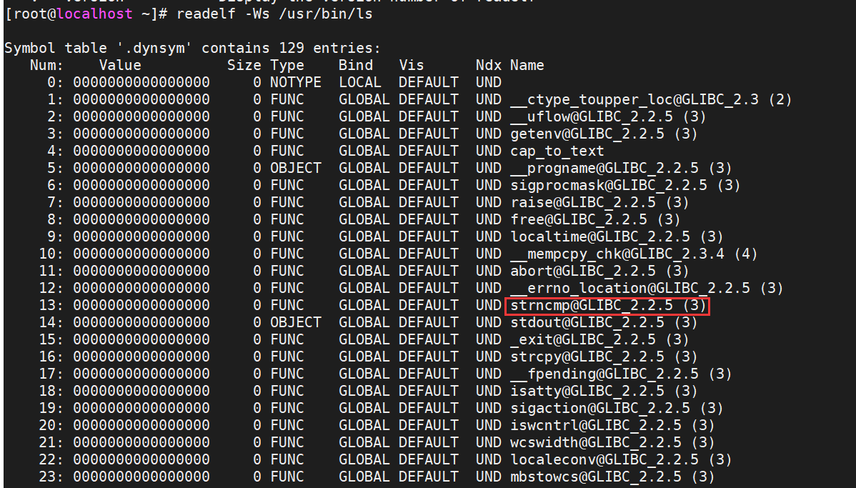 查看我们要劫持的命令或系统文件中存在哪些可以被劫持的函数
