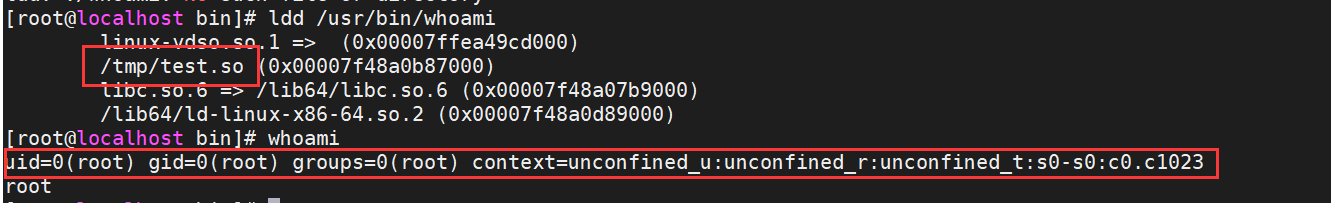 # 添加静态库文件 ./patchelf --add-needed /tmp/test.so /usr/bin/whoami # 删除静态库文件 ./patchelf --remove-needed /tmp/test.so /usr/bin/whoami -
