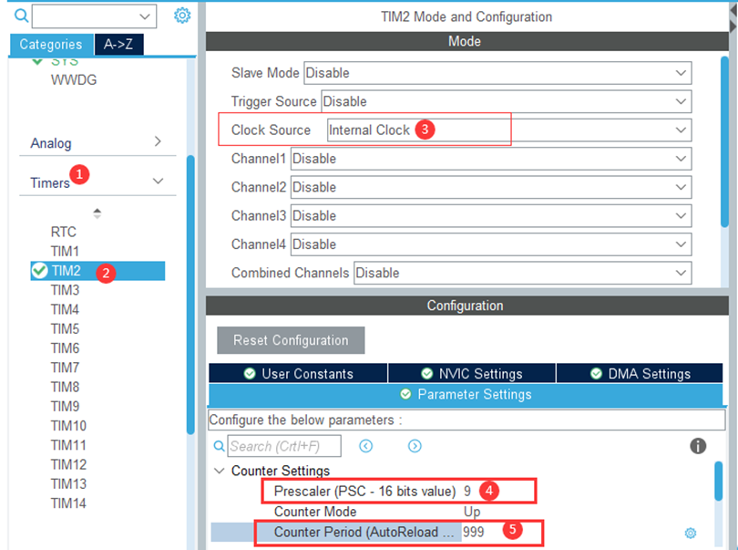 2.1 设置Clock Source时钟源、Prescaler、Counter Period参数