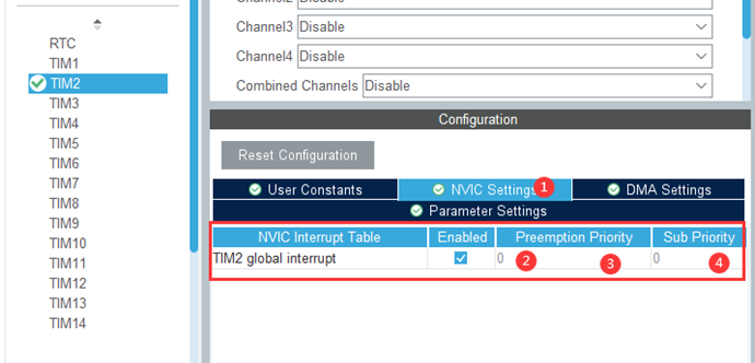 void HAL_TIM_Base_MspInit(TIM_HandleTypeDef* tim_baseHandle) { __HAL_RCC_TIM2_CLK_ENABLE(); //使能TIM2时钟 HAL_NVIC_SetPriority(TIM2_IRQn, 0, 0); //设置中断优先级,抢占0,子优先级0 HAL_NVIC_EnableIRQ(TIM2_IRQn); //开启TIM2中断 }