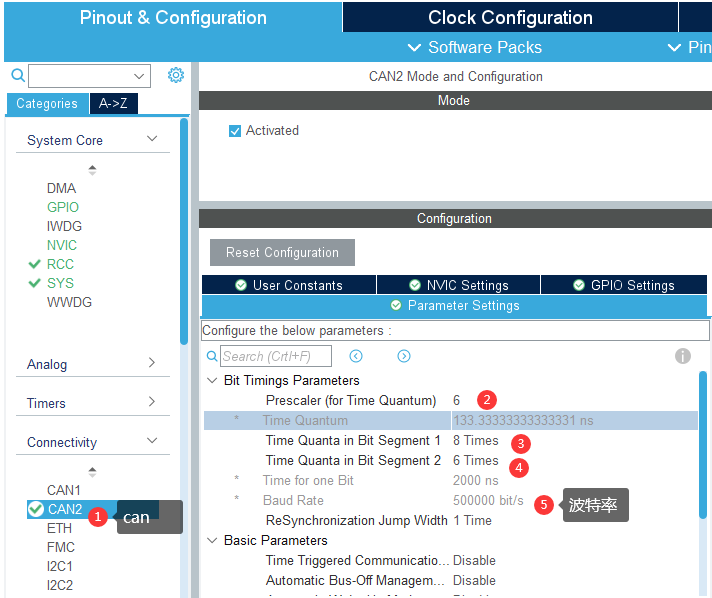 int main(void) { /* USER CODE BEGIN 1 */ uint8_t TxData[8] = {0x11, 0x22, 0x33, 0x44, 0x55, 0x66, 0x77, 0x88}; /* USER CODE END 1 */ /* MCU Configuration--------------------------------------------------------*/ /* Reset of all peripherals, Initializes the Flash interface and the Systick. */ HAL_Init(); /* USER CODE BEGIN Init */ /* USER CODE END Init */ /* Configure the system clock */ SystemClock_Config(); /* USER CODE BEGIN SysInit */ /* USER CODE END SysInit */ /* Initialize all configured peripherals */ MX_GPIO_Init(); MX_CAN2_Init(); /* USER CODE BEGIN 2 */ vApp_User_CAN_Configuration(); /* USER CODE END 2 */ /* Infinite loop */ /* USER CODE BEGIN WHILE */ while (1) { /* USER CODE END WHILE */ vApp_User_CAN2_TxMessage(TxData, 8); /* USER CODE BEGIN 3 */ } /* USER CODE END 3 */ }