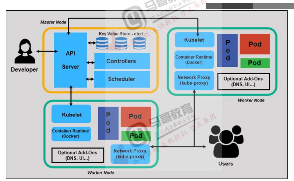 kube-controller-manager:Controller Manager还包括一些子控制器(副本控制器、节点控制器、命名空间控制器和服务账号控制器等),控制器作为集群内部的管理控制中心,负责集群内的Node、Pod副本、服务端点(Endpoint)、命名空间(Namespace)、服务账号(ServiceAccount)、资源定额(ResourceQuota)的管理,当某个Node意外宕机时,Controller Manager会及时发现并执行自动化修复流程,确保集群中的pod副本始终处理于预期的工作状态。