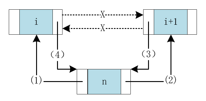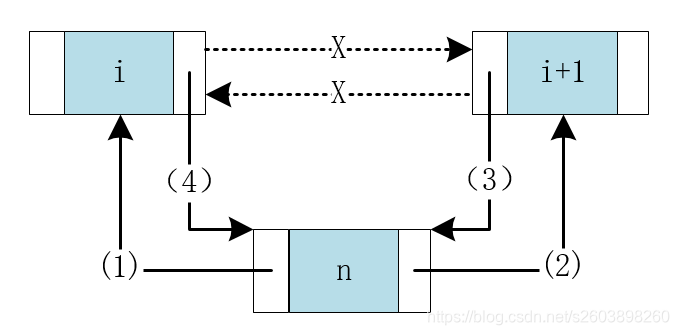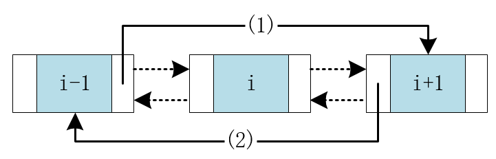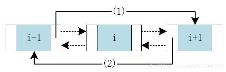 然后连接下一节点的前驱节点,最后修改前一节点的后驱节点。