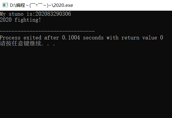 printf("My stuno is:202083290306\n2020 fighting!\n");