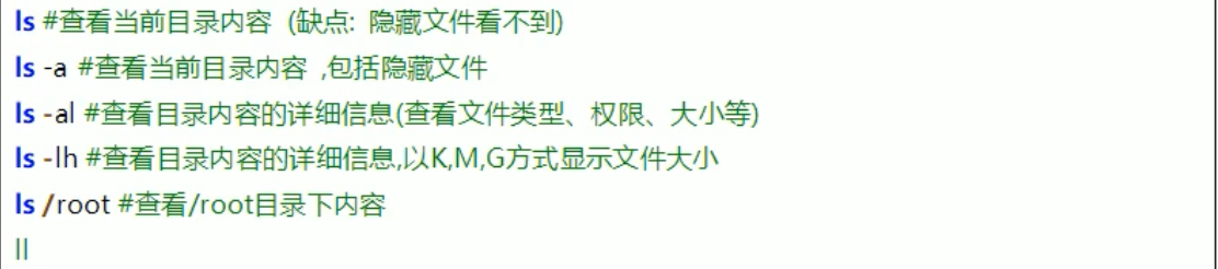 ls 查看当前目录内容(缺点隐藏文件看不到) ll 等价于ls -l查看当前自录文件的详情(缺点:隐藏文件看不到)