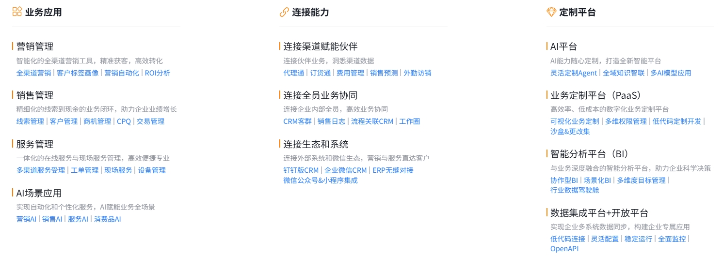 纷享销客CRM以其完备且深入的产品功能脱颖而出。它覆盖了营销、销售、服务三条完整业务线,为企业提供了一站式的客户关系管理解决方案。