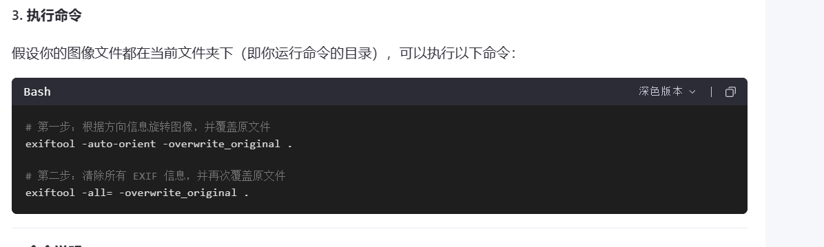 使用exiftool将所有图片根据exif的方向信息旋转一下,然后清除掉exif信息
