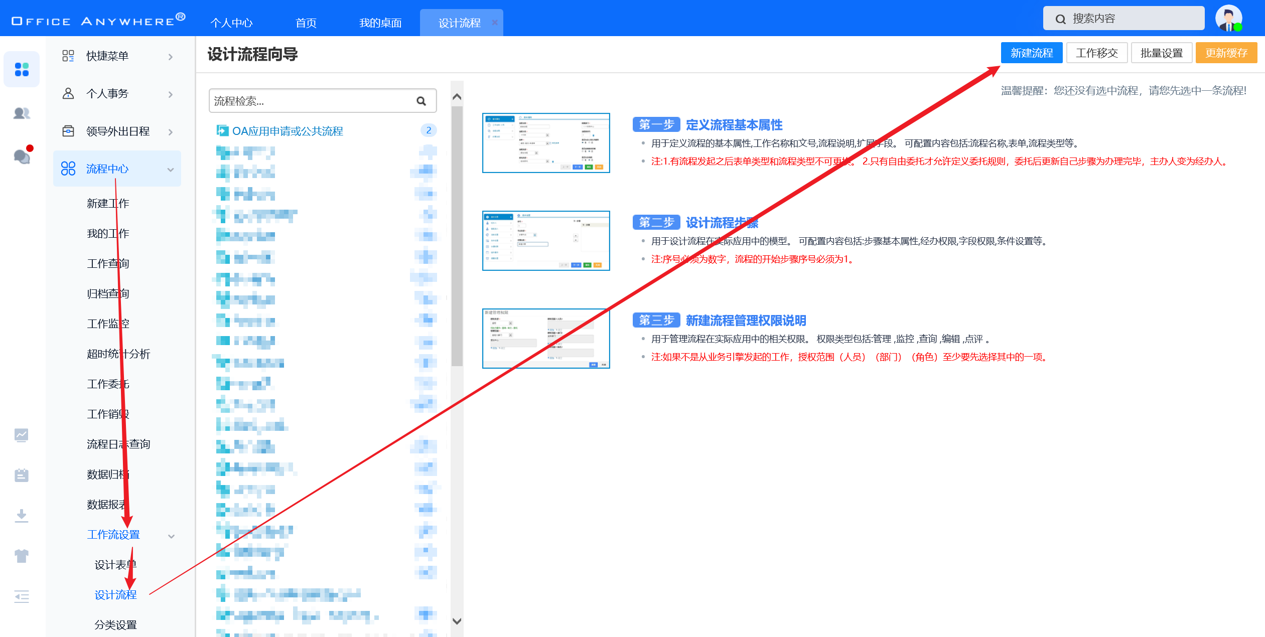 1、登录系统管理员账号,进入系统->流程中心->工作流设置->设计流程->新建流程,新建一个流程。如图所示: