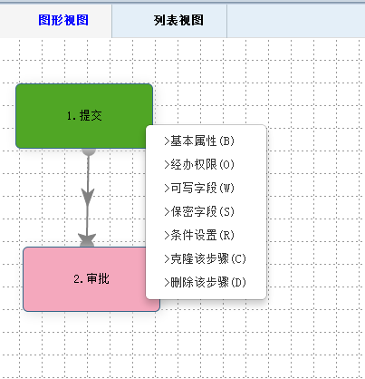 3、进入流程设计步骤->新建步骤,然后根据自己的实际情况设计每一步的经办权限。可写字段,保密字段等。如图所示: