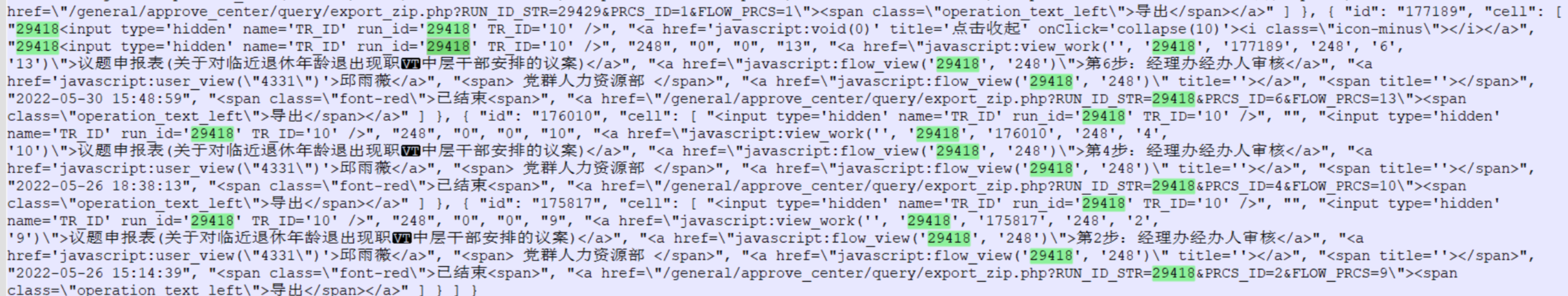 第五步:根据流水号筛出来该流程表单相关内容,把特殊字符删除