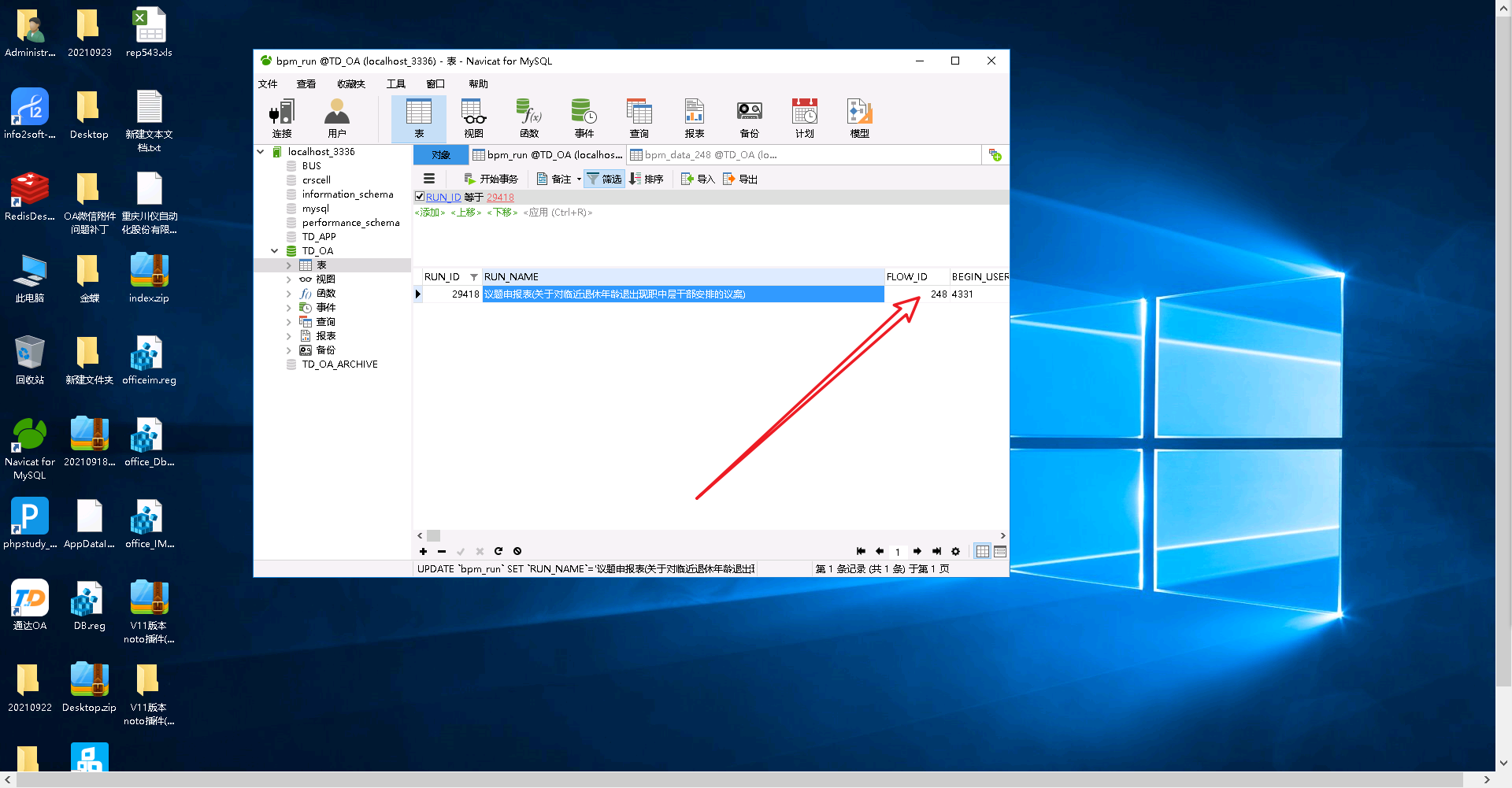第四步:直接在数据库中搜flow_id值找到存储流程的表单