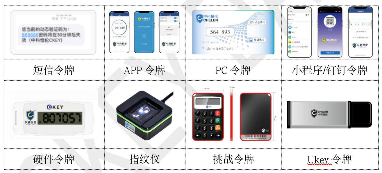 支持短信认证、APP认证、小程序认证、钉钉认证、硬件令牌认证、指纹认证、人脸认证、U盘证书认证等多种认证方式,还可以多种方式组合使用  |