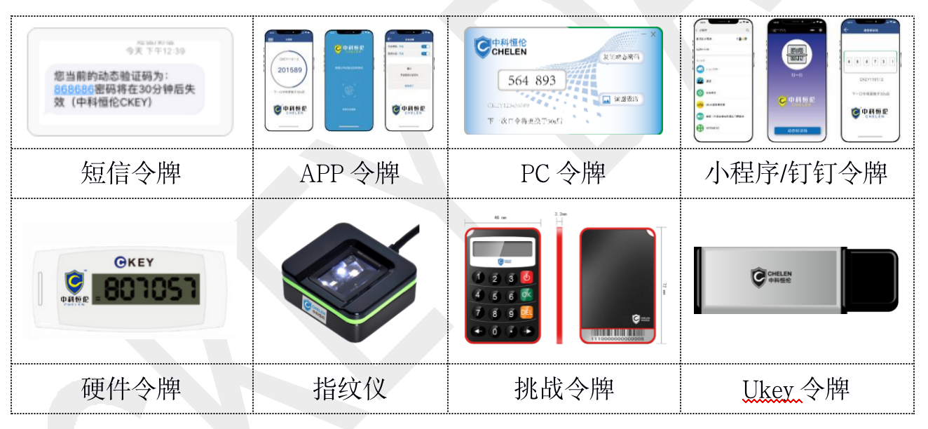 支持短信认证、APP认证、小程序认证、钉钉认证、硬件令牌认证、指纹认证、人脸认证、U盘证书认证等多种认证方式,还可以多种方式组合使用  |