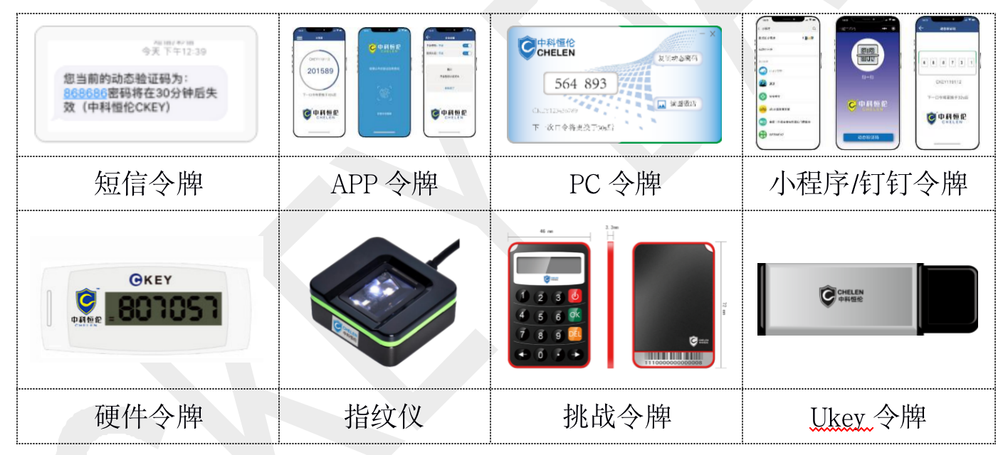 支持短信认证、APP认证、小程序认证、钉钉认证、硬件令牌认证、指纹认证、人脸认证、U盘证书认证等多种认证方式,还可以多种方式组合使用  |