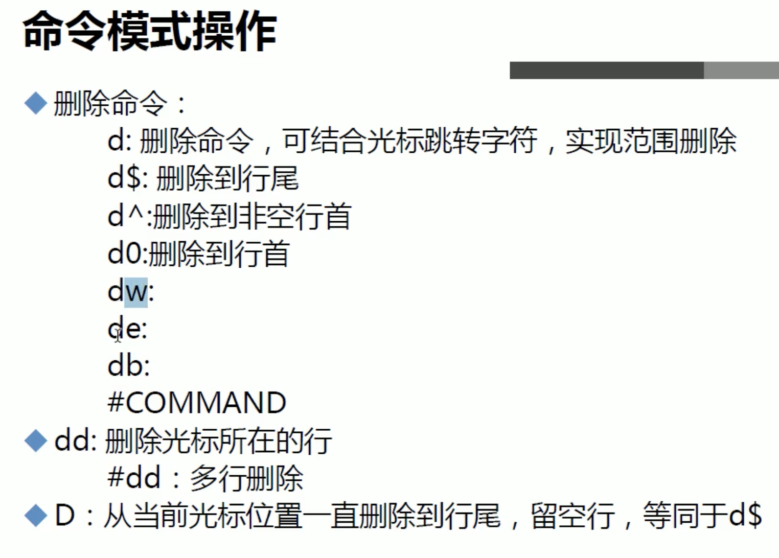 8.5 向左删除至行首 d0 向右删除至行尾 d$