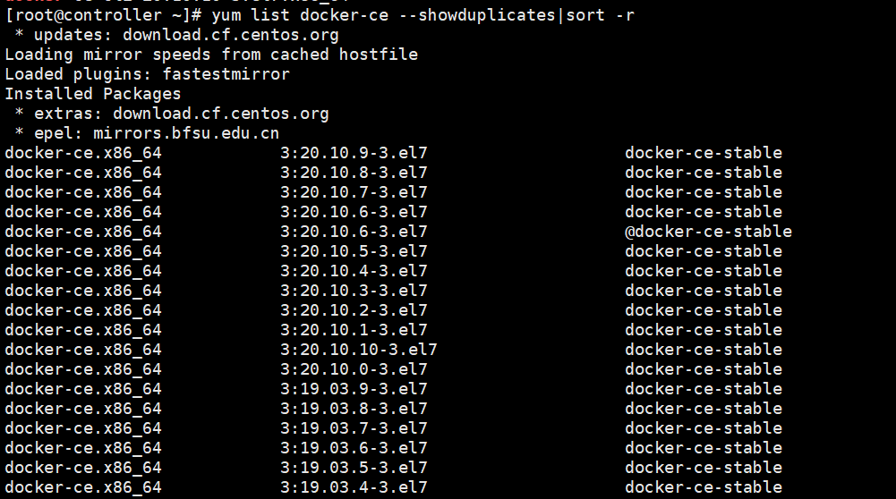 yum list docker-ce --showduplicates|sort -r