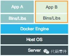 VM 的 Hypervisor 需要实现对硬件的虚拟化,并且还要搭载自己的操作系统,自然在启动速度和资源利用率以及性能上有比较大的开销。而 Docker 的设计图是这样的: