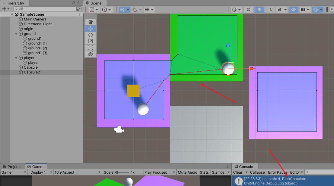 # _capsule2在NavMesh上,且可达,NavMeshPathStatus.PathComplete