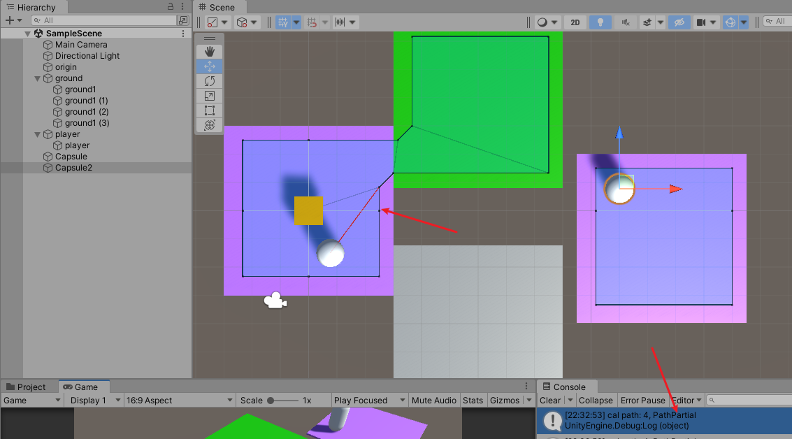 # _capsule2在NavMesh上,但那个NavMesh不可达,NavMeshPathStatus.PathPartial