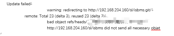 fatal: bad object refs/heads/*******优化20230601 error: http://192.******* did not send all necessary objects