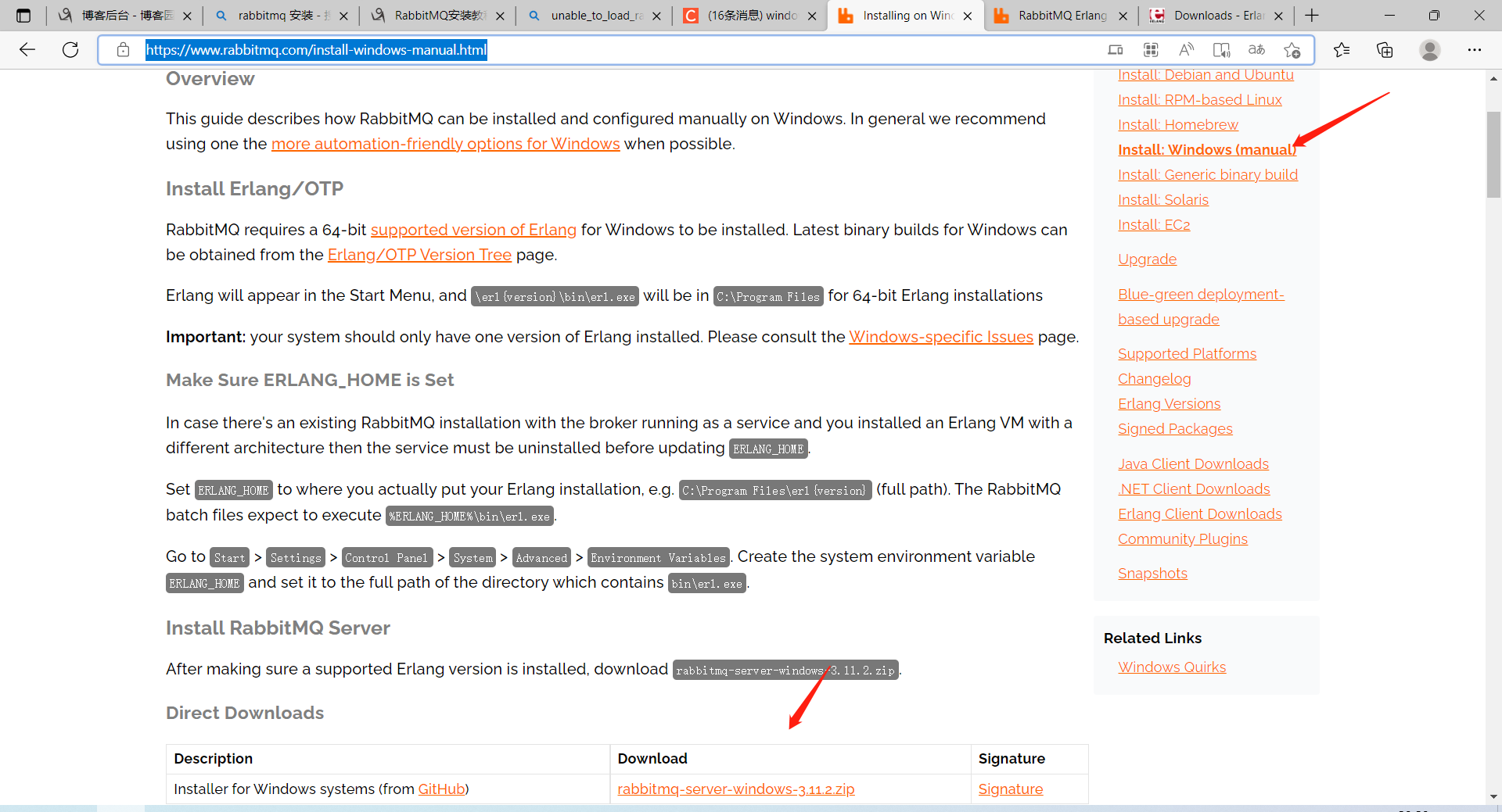 3、下载并安装RabbitMQ(manual版本)