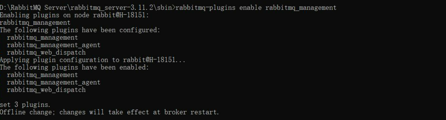 选中rabbitmq路径,输入cmd,回车,进入当前层级下,输入rabbitmq-plugins enable rabbitmq_management命令进行安装