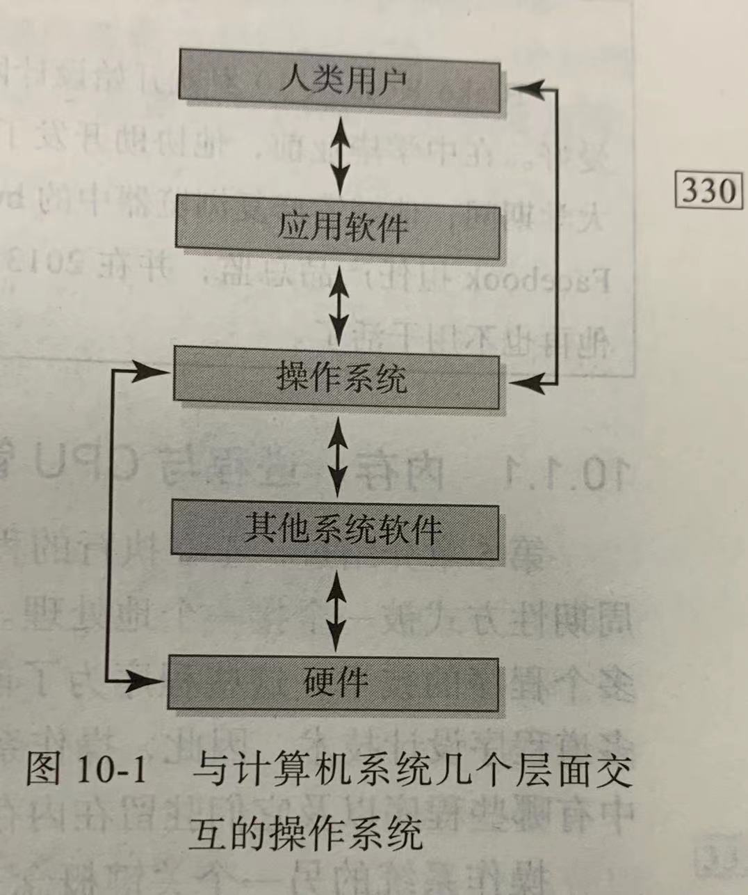 操作系统(operating system).:管理计算机资源并为系统交互提供界面的系统软件。