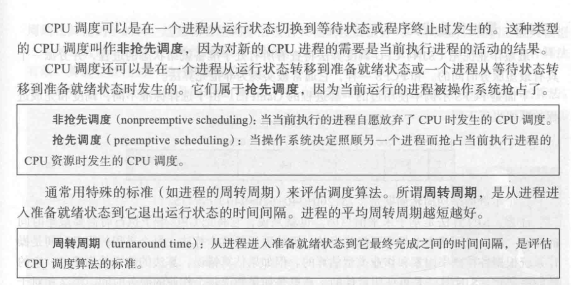 CPU调度(CPU scheduling):确定主存中的哪个进程可以访问CPU以便执行的动作。