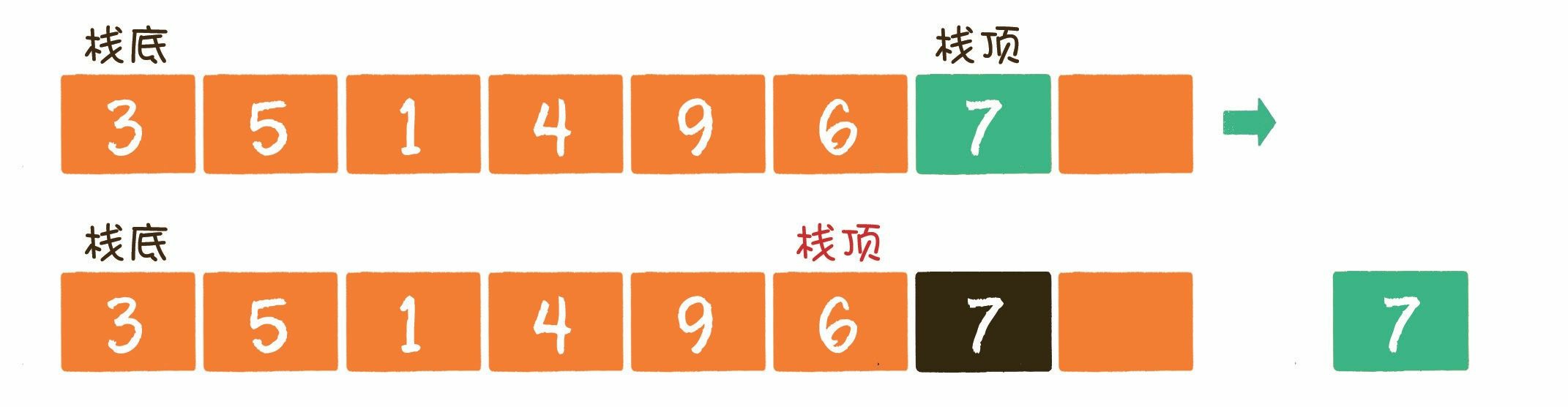 出栈操作(pop)就是把元素从栈中弹出,只有栈顶元素才允许出栈,出栈元素的前一个元素将会成为新的栈顶。