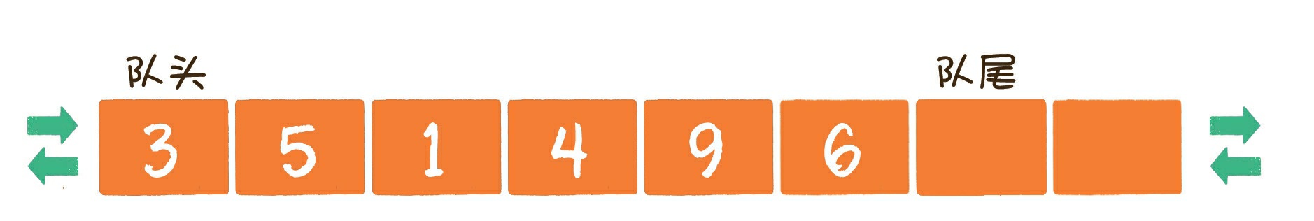 需要注意的是,队尾指针指向的位置永远空出1位,所以队列最大容量比数组长度小1。