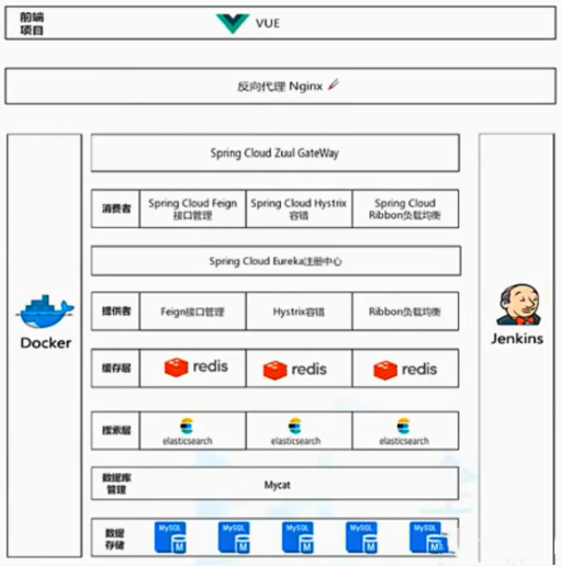 | 8 | 分布式数据存储 | Elasticsearch(搜索)、Mycat(数据库中间件) |