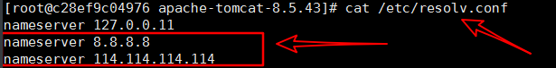 vi /etc/resolv.conf #修改DNS #设置如下值 nameserver 8.8.8.8 nameserver 114.114.114.114