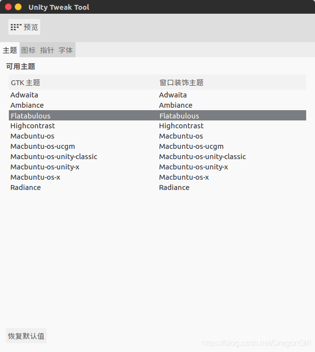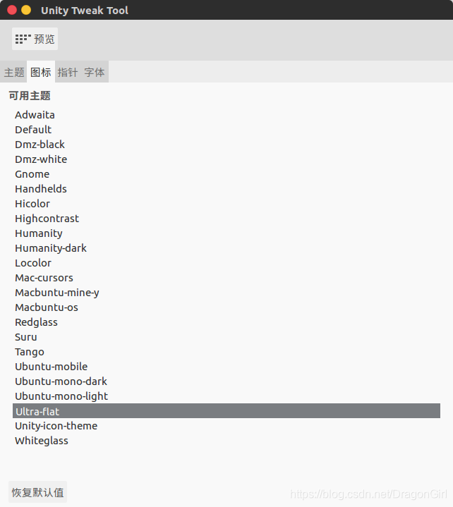 安装完成后,打开unity-tweak-tool软件,修改主题和图标:
