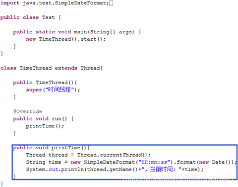 注:通过运行结果可以发现此方法被一个名为“时间线程”的线程执行